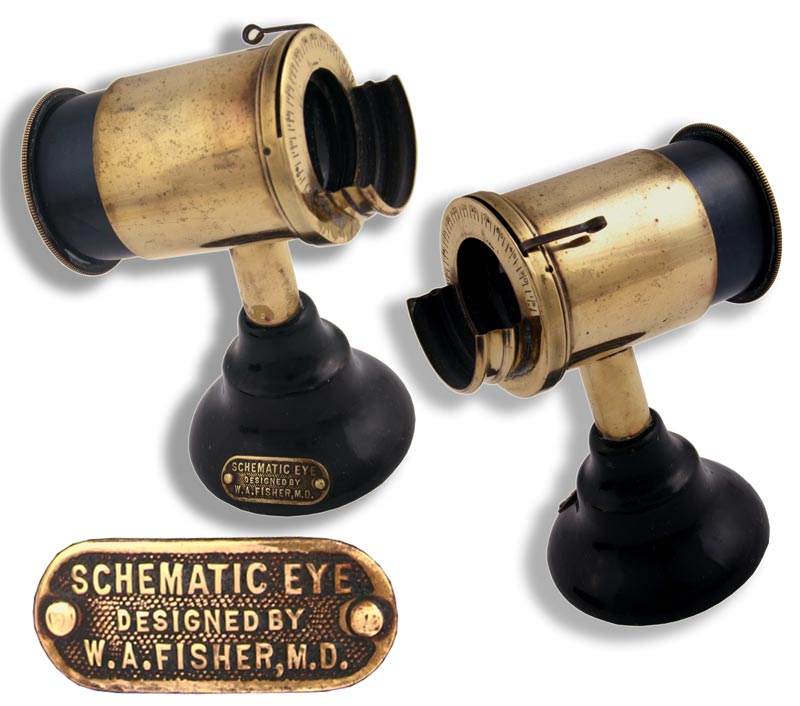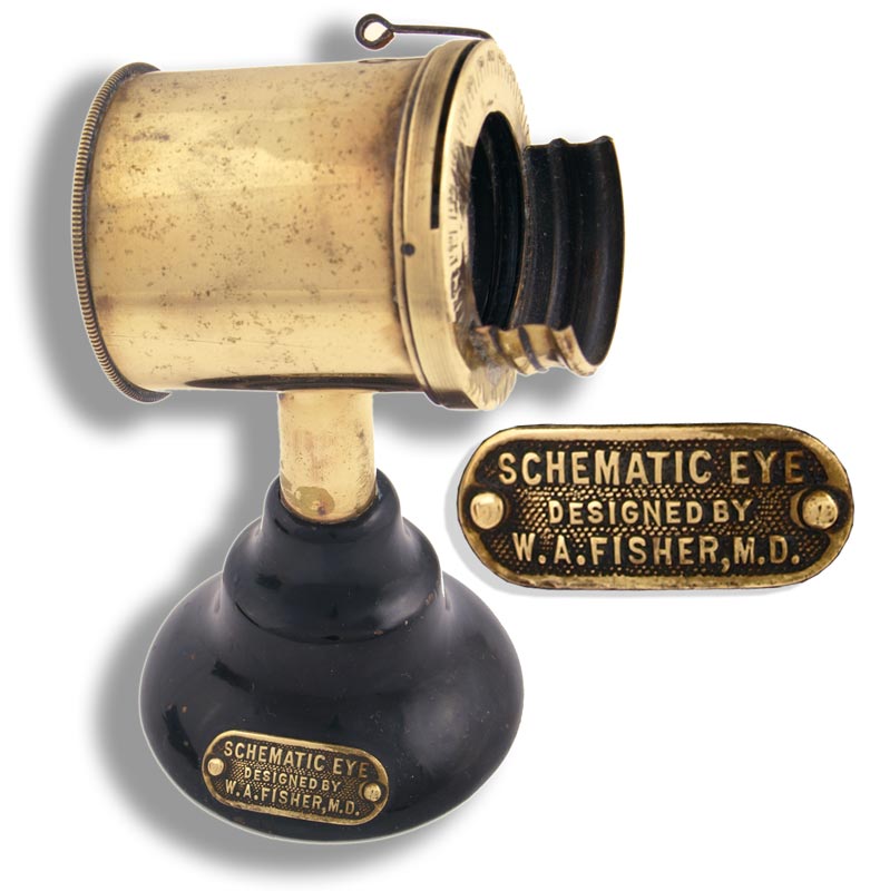 The cast iron base is marked Schematic Eye Designed by WA Fisher MD. Overall height 11.5 cm (4.5 inches)