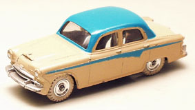 The early 1960's Austin A105 scaled at 1:43. Made by Meccano Ltd. of England as known in its commercial name as 'Dinky Toys'. This is an extremely rare model from the company's early ages. Made entirely of metal, the windows are coated with transparent plastic. This nice car has white rubber wheels and silver alloys.
